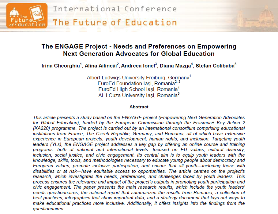 Publication of the article entitled “The ENGAGE Project – Needs and Preferences on Empowering Next Generation Advocates for Global Education”, presented in the Future of Education – 15th Edition International Conference, June 2025 in Florence.